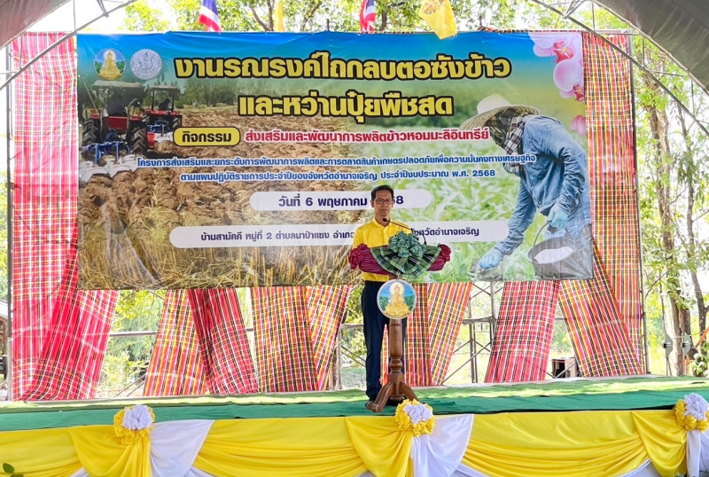 วันอังคารที่ 6 พฤษภาคม พ.ศ. 2568 นายสุริยัน ทองธรรมชาติ สหกรณ์จังหวัดอำนาจเจริญ ร่วมงานรณรงค์ไถกลบตอซังข้าวและหว่านปุ๋ยพืชสด โครงการส่งเสริมและยกระดับการพัฒนาการผลิตและการตลาดสินค้าเกษตรปลอดภัยเพื่อความมั่นคงทางเศรษฐกิจ ตามแผนปฏิบัติราชการจังหวัดอำนาจเจริญ ประจำปีงบประมาณ พ.ศ.2568 โดยมีนายเสนีย์ ส้มเขียวหวาน รองผู้ว่าราชการจังหวัดอำนาจเจริญ เป็นประธานในพิธีเปิดงานฯ ณ บ้านสามัคคี หมู่ที่ 2 ตำบลนาป่าแซง อำเภอปทุมราชวงศา จังหวัดอำนาเจริญ