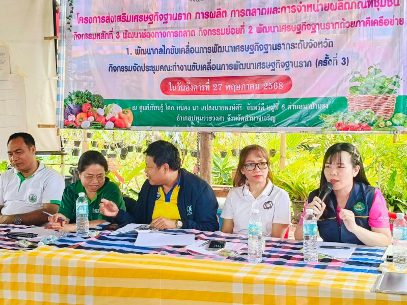 วันที่ 27 พฤษภาคม 2568 นายสุริยัน ทองธรรมชาติสหกรณ์จังหวัดอำนาจเจริญ มอบหมายให้นางสาวสุดธารทิพย์ แก้วมงคลศักดิ์ ผู้อำนวยการกลุ่มส่งเสริมสหกรณ์ 3 เข้าร่วมลงพื้นที่ติดตามวิเคราะห์ ค้นหาศักยภาพและความต้องการของกลุ่มเป้าหมาย ตามโครงการส่งเสริมเศรฐกิจฐานราก การผลิต การตลาดและการจำหน่ายผลิตภัณฑ์ชุมชน ณ ศูนย์เรียนรู้โคก หนอง นา แปลงนายพงษ์ศิริ จันทร์ดี หมู่ที่ 6 ตำบลนาป่าแซง อำเภอปทุมราชวงศา จังหวัดอำนาจเจริญ