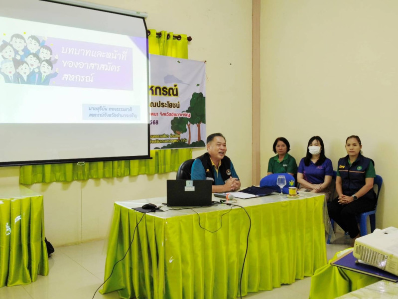 วันที่ 8 กรกฎาคม 2568 เวลา 09.30 น. นายสุริยัน ทองธรรมชาติ สหกรณ์จังหวัดอำนาจเจริญ เป็นประธานในกิจกรรมพัฒนาอาสาสมัครสหกรณ์ ประจำปีงบประมาณ พ.ศ. 2568 ซึ่งศูนย์ถ่ายทอดเทคโนโลยีการสหกรณ์ที่ 6 ได้จัดทำโครงการฯ มีวัตถุประสงค์เพื่อให้เกิดการพัฒนาและขับเคลื่อนอาสาสมัครสหกรณ์อย่างต่อเนื่อง โดยคาดหวังให้เป็น Soft Power ในการพัฒนาสหกรณ์และกลุ่มเกษตรกรสู่ความเข้มแข็ง และสำนักงานสหกรณ์จังหวัดอำนาจเจริญได้คัดเลือกคณะกรรมการดำเนินการและเจ้าหน้าที่ของสหกรณ์ส่งเสริมเกษตรกรพนา จำกัด เข้าร่วมโครงการฯ จำนวน 15 คน กิจกรรมดังกล่าวได้มีการบรรยายพิเศษเกี่ยวกับบทบาทหน้าที่และกิจกรรมของอาสาสมัครสหกรณ์ การมอบหมวกอาสาสมัครสหกรณ์ โดยมีอาสาสมัครสหกรณ์ เจ้าหน้าที่ส่งเสริมสหกรณ์ บุคลากรของศูนย์ถ่ายทอดเทคโนโลยีการสหกรณ์ที่ 6 และบุคลากรสำนักงานสหกรณ์จังหวัดอำนาจเจริญ เข้าร่วมกิจกรรมดังกล่าว จำนวน 30 คน ณ ที่ทำการสหกรณ์ส่งเสริมเกษตรกรพนา จำกัด และกิจกรรมบำเพ็ญประโยชน์ ณ วัดบ้านถ่อน ตำบลไม้กลอน อำเภอพนา จังหวัดอำนาจเจริญ