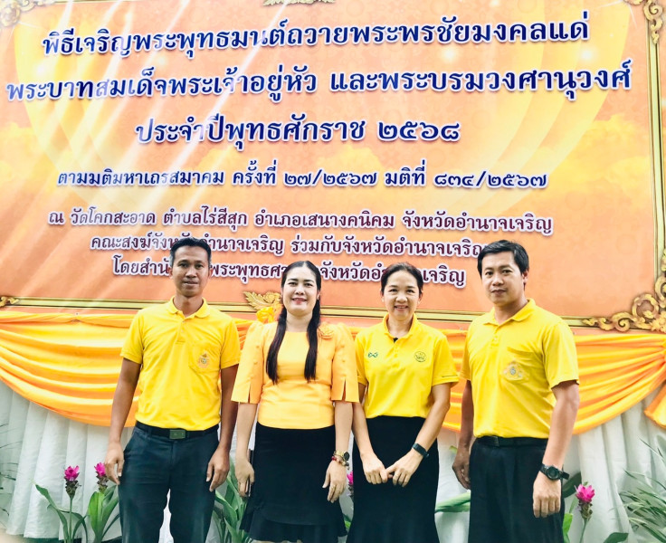 วันพฤหัสบดีที่ 28 สิงหาคม 2568 นายณรงค์ เทพเสนา ผู้ว่าราชการจังหวัดอำนาจเจริญ เป็นประธานในพิธีเจริญพระพุทธมนต์เฉลิมพระเกียรติถวายพระพรชัยมงคลแด่ พระบาทสมเด็จพระเจ้าอยู่หัวและพระบรมวงศานุวงศ์ ประจำปีพุทธศักราช 2568 ในการนี้ นายสุริยัน ทองธรรมชาติ สหกรณ์จังหวัดอำนาจเจริญ มอบหมายให้ ส.ต.ต.หญิง ศุภางค์ วันชูเพลา ผู้อำนวยการกลุ่มส่งเสริมและพัฒนาธุรกิจสหกรณ์ พร้อมด้วยบุคลากรสำนักงานสหกรณ์จังหวัดอำนาจเจริญ เข้าร่วมประกอบพิธีดังกล่าว ณ วัดโคกสะอาด ตำบลไร่สีสุก อำเภอเสนางคนิคม จังหวัดอำนาจเจริญ