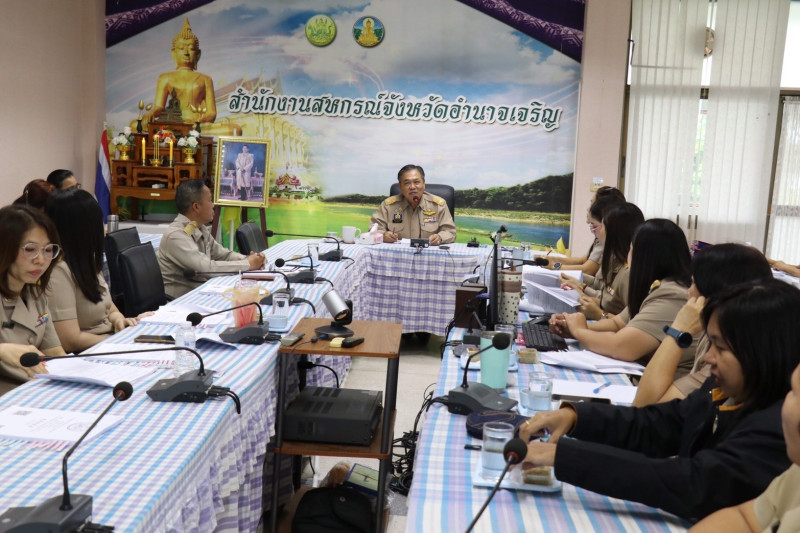 วันจันทร์ที่ 8 กันยายน พ.ศ. 2568 เวลา 09.00 น. นายสุริยัน ทองธรรมชาติ สหกรณ์จังหวัดอำนาจเจริญ เป็นประธานการประชุมประจำเดือนข้าราชการ ลูกจ้างประจำ และพนักงานราชการสำนักงานสหกรณ์จังหวัดอำนาจเจริญ ครั้งที่ 9/2568 เพื่อชี้แจงแนวทางการดำเนินการตามแผนปฏิบัติงานและผลการดำเนินงานตามนโยบายของกรมส่งเสริมสหกรณ์ ประจำปีงบประมาณ พ.ศ. 2568 และติดตามผลการดำเนินงานในรอบเดือนสิงหาคม 2568 ที่ผ่านมา ณ ห้องประชุมสำนักงานสหกรณ์จังหวัดอำนาจเจริญ