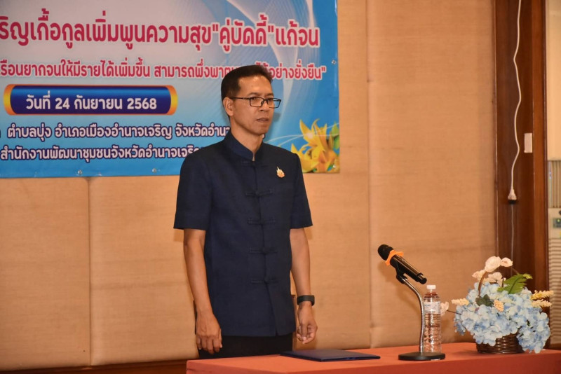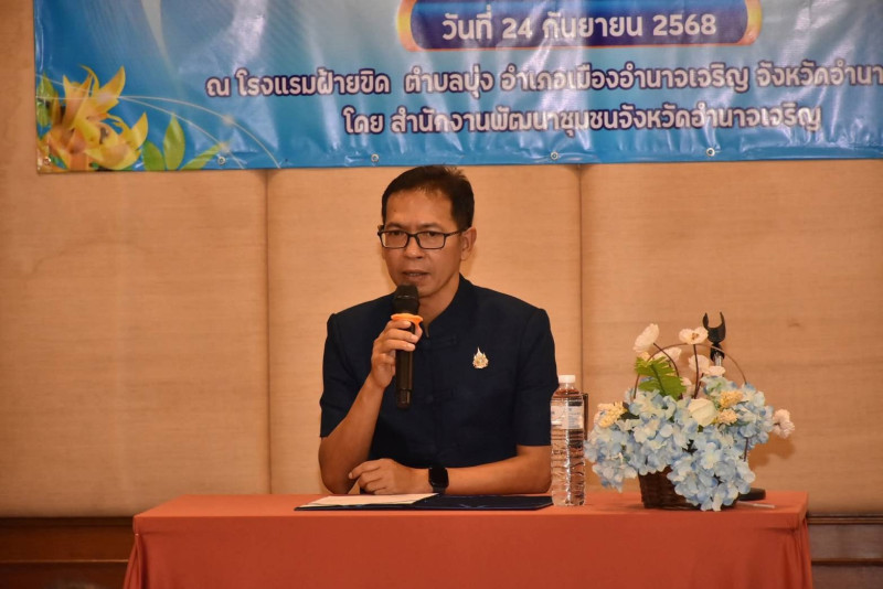 วันที่ 24 กันยายน 2568 นายสุริยัน ทองธรรมชาติ สหกรณ์จังหวัดอำนาจเจริญ มอบหมายให้นางสมจิตร์ นันตะวัน ผู้อำนวยการกลุ่มจัดตั้งและส่งเสริมสหกรณ์ เข้าร่วมเป็นเกียรติในพิธีเปิดโครงการอำนาจเจริญ เกื้อกูลเพิ่มพูนความสุข “คู่บัดดี้” แก้จน โดยสำนักงานพัฒนาชุมชนจังหวัดอำนาจเจริญ เพื่อส่งเสริมและพัฒนาครัวเรือนยากจนในระบบ TPMAP (ทีพี แม็พ) ที่ตกเกณฑ์ด้านรายได้ จำนวน 80 ครัวเรือน ให้มีความรู้ในการประกอบอาชีพ และสามารถหลุดพ้นจากความยากจน โดยมี นายเสนีย์ ส้มเขียวหวาน เป็นประธาน ณ โรงแรมฝ้ายขิด อำเภอเมือง จังหวัดอำนาจเจริญ
