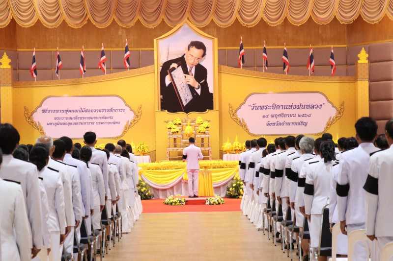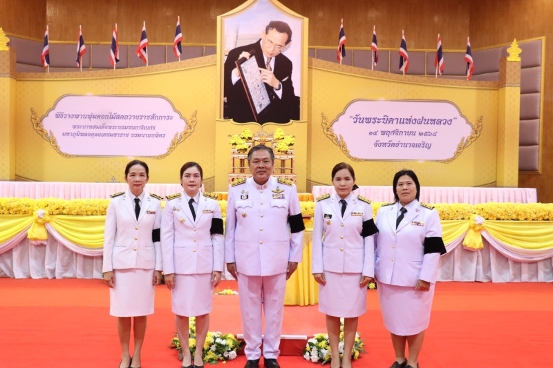 วันศุกร์ที่ 14 พฤศจิกายน ๒๕๖๘ นายเสนีย์ ส้มเขียวหวาน รองผู้ว่าราชการจังหวัด รักษาราชการแทนผู้ว่าราชการจังหวัดอำนาจเจริญ เป็นประธานในพิธีถวายราชสักการะวางพานพุ่มดอกไม้สด พระบาทสมเด็จพระบรมชนกาธิเบศร มหาภูมิพลอดุลยเดชมหาราชบรมนาถบพิตร เนื่องในวันพระบิดาแห่งฝนหลวง ประจำปี 2568 ในการนี้ นายสุริยัน ทองธรรมชาติ สหกรณ์จังหวัดอำนาจเจริญ พร้อมด้วยบุคลากรสำนักงานสหกรณ์จังหวัดอำนาจเจริญ เข้าร่วมพิธีดังกล่าว ณ หอประชุมพญานาครินทร์ ศาลากลางจังหวัดอำนาจเจริญ