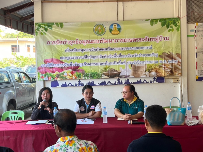 วันที่ 30 มกราคม 2569 เวลา 09.00 น. นายสุริยัน ทองธรรมชาติ สหกรณ์จังหวัดอำนาจเจริญ มอบหมายให้นางภัทรนันท์ คำภา นักวิชาการสหกรณ์ชำนาญการ และนางศรินรัตน์ ลืนภูเขียว นักวิชาการสหกรณ์ กลุ่มส่งเสริมสหกรณ์ 2 ลงพื้นที่เข้าร่วมจัดทำชุดข้อมูลแผนพัฒนาการเกษตรระดับหมู่บ้าน “การทำเห็ดนางฟ้า”ตามที่กระทรวงเกษตรและสหกรณ์ ได้จัดทำโครงการขับเคลื่อนการเกษตรระดับหมู่บ้าน สู่การผลิตสินค้าเกษตรมูลค่าสูง เพื่อสนับสนุนการจัดทำแผนพัฒนาการเกษตรและสหกรณ์ และบูรณาการแก้ไขปัญหาสินค้าเชิงพื้นที่ของจังหวัดอำนาจเจริญ ภายใต้โครงการจัดเก็บข้อมูลด้านการเกษตรในระดับพื้นที่ ประจำปีงบประมาณ พ.ศ.2569 ณ ศาลาประชาคม บ้านหนองขอน หมู่2 ตำบลหัวตะพาน อำเภอหัวตะพาน จังหวัดอำนาจเจริญ
