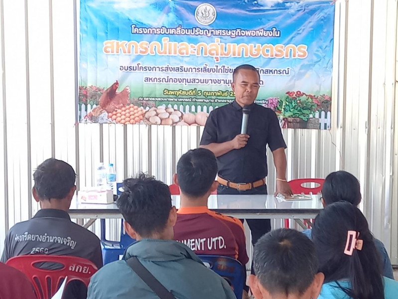 วันที่ 5 กุมภาพันธ์ 2569 นายสุริยัน ทองธรรมชาติ สหกรณ์จังหวัดอำนาจเจริญ เป็นประธานเปิดโครงการขับเคลื่อนการประยุกต์ใช้ปรัชญาเศรษฐกิจพอเพียงในสหกรณ์และกลุ่มเกษตรกรอบรมโครงการส่งเสริมการเลี้ยงไก่ไข่ของสมาชิกสหกรณ์กองทุนสวนยางชานุมาน จำกัด พร้อมด้วยนางสาวสุดธารทิพย์ แก้วมงคลศักดิ์ ผู้อำนวยการกลุ่มส่งเสริมสหกรณ์ 3 พร้อมด้วยบุคลากรกลุ่มส่งเสริมสหกรณ์ 3 โดยได้รับความรู้จากสำนักงานปศุสัตว์อำเภอชานุมาน เพื่อส่งเสริมให้สมาชิกสหกรณ์มีอาชีพเสริมด้านการเลี้ยงไก่ไข่สร้างความมั่นคงทางอาหารและลดรายจ่ายในครัวเรือน มีการขับเคลื่อนปรัชญาของเศรษฐกิจพอเพียงในระดับครัวเรือนของสมาชิก และให้สหกรณ์เป็นศูนย์กลางในการส่งเสริมอาชีพและพัฒนาเศรษฐกิจฐานรากของชุมชน ซึ่งมีสมาชิกเข้าร่วมโครงการ จำนวน 15 คน ณ ตลาดรวบรวมยางพาราสหกรณ์ ตำบลชานุมาน อำเภอชานุมาน จังหวัดอำนาจเจริญ